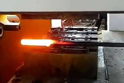 可用于中大型長桿類鍛件的局部鐓粗、沖孔、塑形,在礦山機械工具、石油機械、鐵路基建等領域應用廣泛,如抽油桿、礦山釬桿、鐵路道叉等。